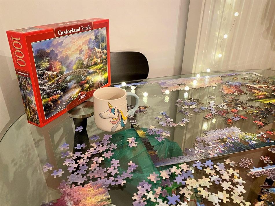 Since dealing with quarantine got harder and harder for Dan too, we bought a 1000-piece puzzle. Well, it only took us 3 days (a total of about 10 hours) to finish the puzzle. Therefore, we now have to think about other activities to do together.
