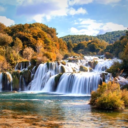 Krka National Park features a similar landscape to Plitvice, with numerous waterfalls passing from one turquoise pond to another, surrounded by green forests. Along the tourist routes, there are also other highlights, including Roman ruins, monasteries and traditional watermills. Visit it as a day trip from Split!