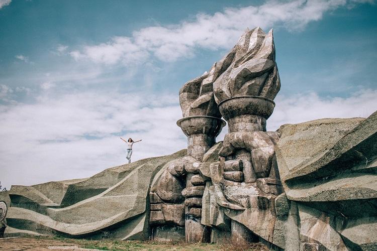 You’ll first come across the two big iron fists holding torches at the base of Buzludzha Monument. These two fists are much bigger than you will initially think. The size of one finger is approximately the size of one man. If you want to take some interesting photos, then the Buzludzha iron fists are the perfect place.