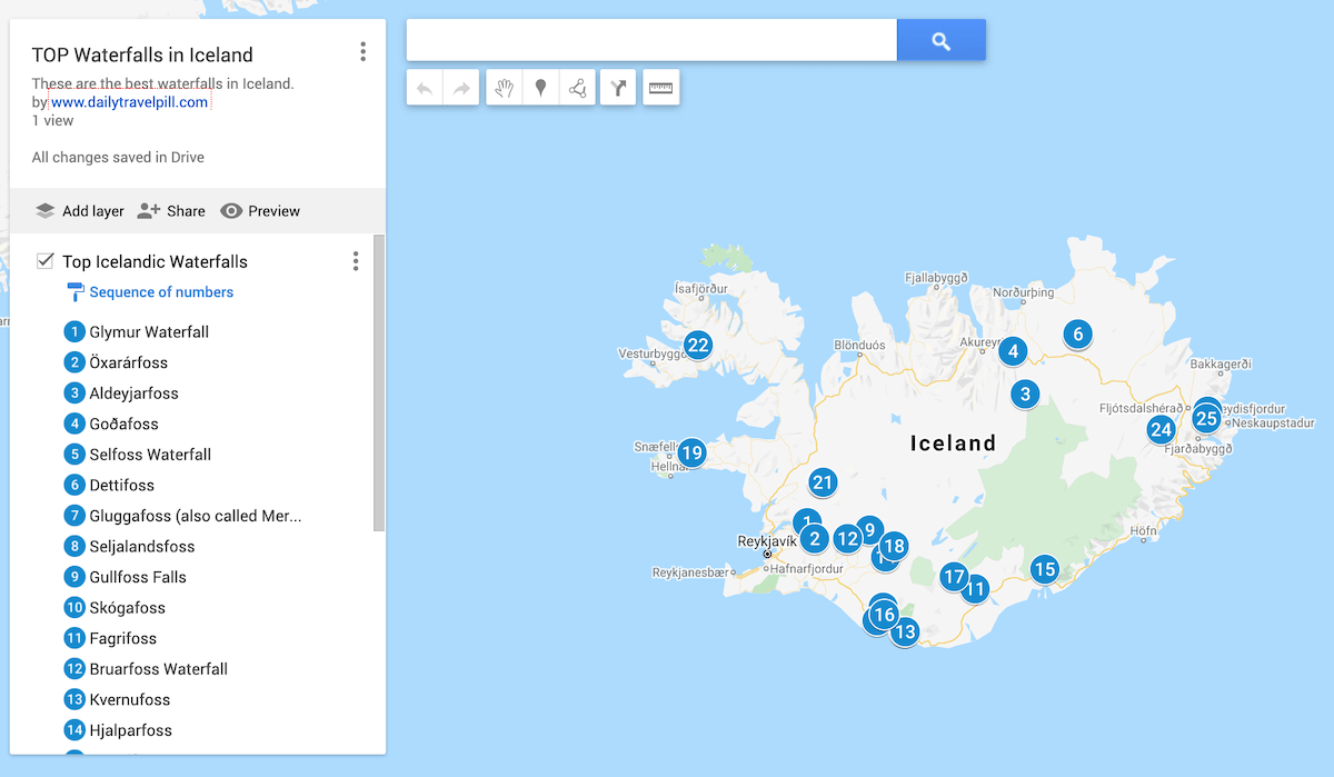 1. Top waterfalls in Iceland – MAP