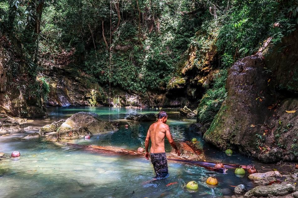 Most guided tours include a stop at the Hingagdanan Cave. Once you climb down the narrow stairs, you’ll enter the cave that hides a large pool of fresh water. If you want, you can go swimming.