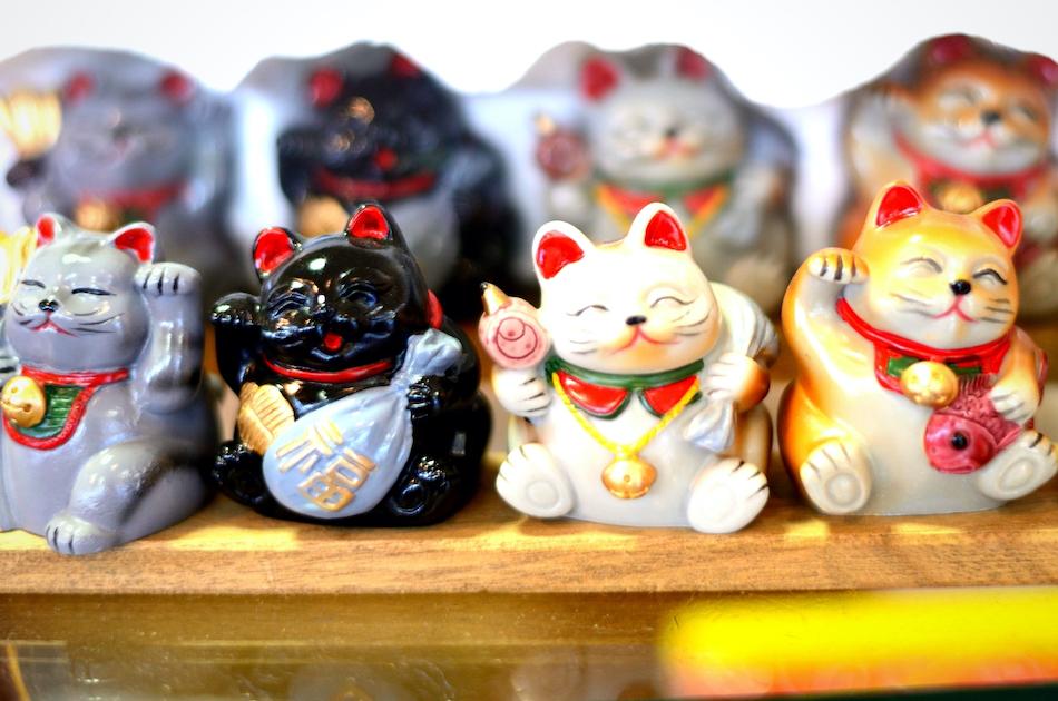 Even though usually maneki-neko cats are white, you’ll see black ones too. Most of the times they’re displayed at the entrance of shops or homes.