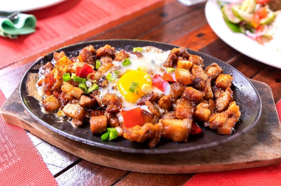 - Sisig – This delicious dish is served sizzling hot on a plate, usually containing fried pig organs such as pig ears, jaws, liver, brain, etc. with onion, chili peppers and sometimes a raw egg.